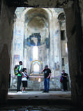 Auf dem Rückweg nach Van überfällt Einige die Wanderlust. Es wird vereinbart, dass der Bus die Wandergruppe absetzt und später im Ort Yedikilise (Siebenkirchen) abholt. Dort kann man die Ruinin eines großen armenischen Klosters besichtigen. Zu Fuß dauert der Weg 1-2 Stunden durch die Bergwelt. Mit dem Wagen muss man zurück nach Van und eine andere Strasse zum Dorf nehmen. Im Dorf findet eine Hochzeit statt. Die erschöpften Wanderer werden spontan eingeladen und bewirtet. Anschließend folgt noch die Kirchenbesichtigung und ein kleines Vorsingen der Dorfmädchen.