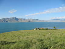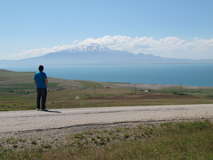 Nach einigen Kilometern auf der Schnellstraße biegt der Bus auf eine kleinere Piste ab, die direkt am Vansee durch kleine Dörfer führt. Sie sind umgeben von Pappelwäldchen. Ansonsten sind die Berge baumlos aber im Juni noch sehr grün. Überall blühen Blumen in intensiven Farben. Bei strahlend blauem Himmel leuchtet der See in den schönsten Blautönen. Am gegenüberliegenden Ufer thront der über 4000 Meter hohe Vulkankegel des Süphan mit seinem schneebedeckten Gipfel. In der Anlage angekommen bleibt noch genug Zeit zum spazieren, schwimmen oder einfach zum faulenzen. Das Abendessen ist ausgezeichnet und auch ein kühles Efes Bier kann man dazu auf der Terrasse genießen.