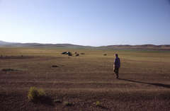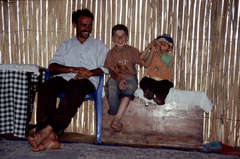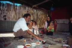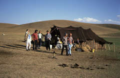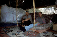 Van, Kesis Gölü, Wolfgang Schäfer (damaliger Leiter des Jugendtreff Südstadt) und Hüseyin Taze sind 2002 zum ersten Mal in der Region. Einladung in ein tradtionelles Zelt. Die Bahnen wurden von Hand gewebt aus selbst gesponnenem Ziegenhaar.