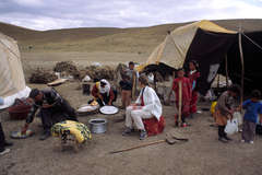 Van, Die Hirtenfamilien sind gerade dabei das Sommerlager am Kesis Gölü zu verlassen. Die Frau backt noch einmal Brote im Erdofen, bevor die Zelte abgeschlagen werden und alle zurückkehren ins Dorf.