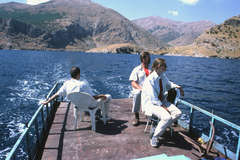 Van, mit Özgür auf einem gemieteten Fischerboot unterwegs zu abgelegenen armenischen Kirchenruinen. Der Germanist ist sehr interessiert an der Geschichte seiner Heimatregion.