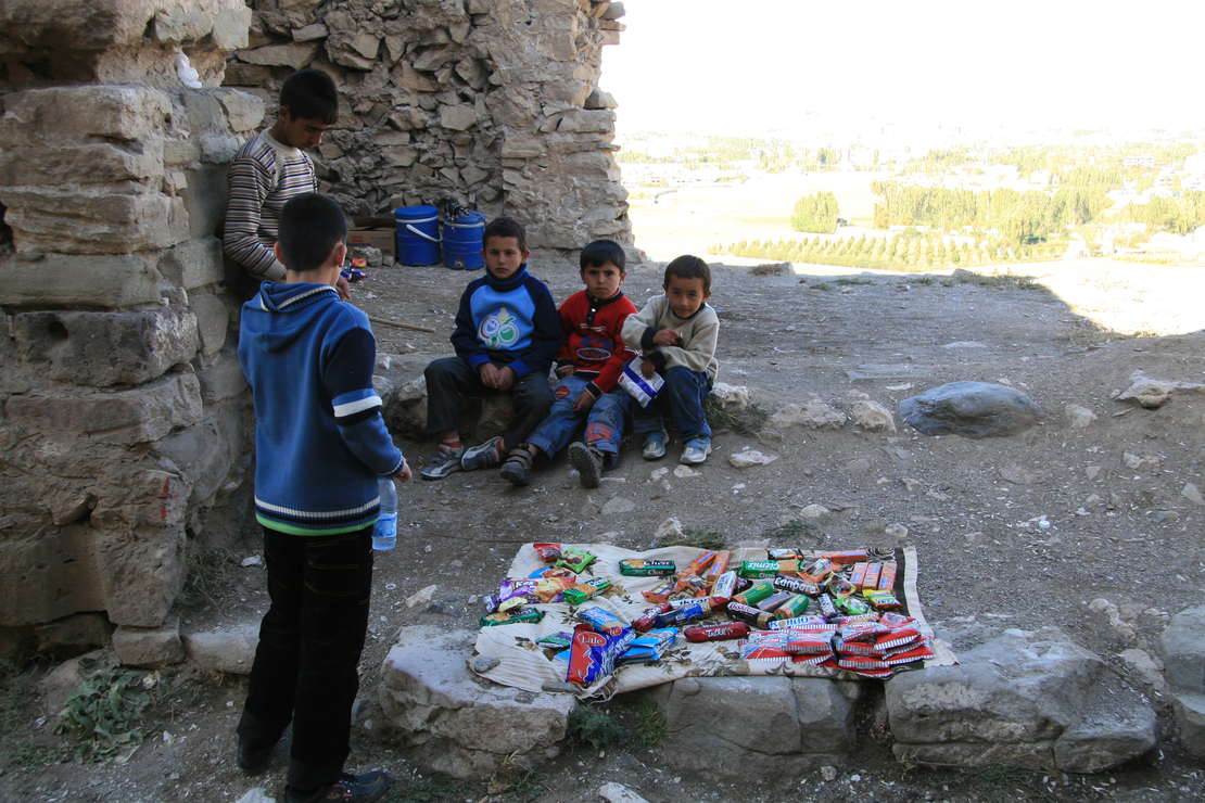 Van, diese Kinder verkaufen nachmittags Getränke, Knabbereien und Kekse an die Touristen auf der Vanburg.