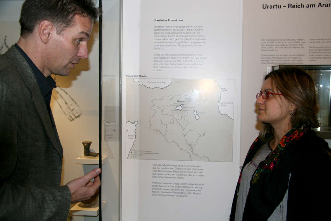 Zozan Özgökce (Vorsitzende von Vakad) in Karlsruhe, Führung durch das Badische Landesmuseum, Dr. Lichter erläutert Austellungsbestandteile zu Urartu.