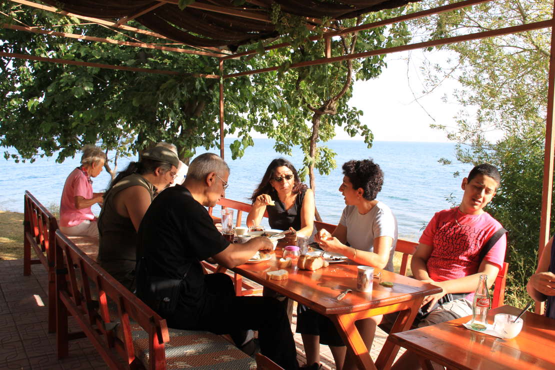 Vansee, Dr. Nikolaus Koch, ein Karlsruher Anbieter von naturnahem Tourismus, lädt die Gruppe ein, seine Ferienanlage am Vansee bei Ercis zu besichtigen. Frühstück im Freien