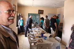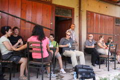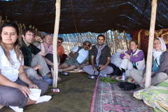 Van Stadt, Besuch beim Kelim Atelier, eine sozial engagierte Bildungseinrichtung für Mädchen. Mittagessen in der Laube. Ein im Haus selbst zubereitetes, kostenloses Mittagessen steht auch den Mädchen zu.