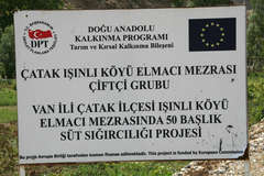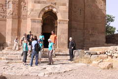 Van Region, Besuch im Dorf Yedikilise (sieben Kirchen), die Moschee wurde direkt vor das Potal der alten Klosterkirche gebaut. Da auch diese Kirche viele Touristen anzieht haben die Dorfbewohner mit einem Zaun dafür gesorgt, dass die Dorftiere ferngehalten werden.