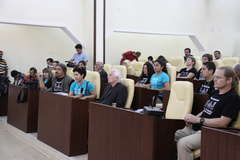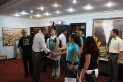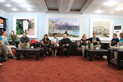 Van, Rathaus, unsere Gruppe besucht das Rathaus, stellt Karlsruhe und die Idee von Partnerstädten vor. Pressebegegnung und Vorstellung im Gemeindeparlament.