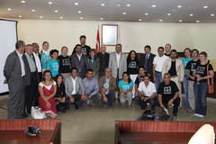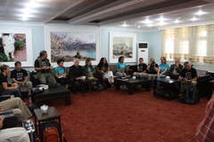 Van, Rathaus, unsere Gruppe besucht das Rathaus, stellt Karlsruhe und die Idee von Partnerstädten vor, Gruppenbild mit Gemeindräten, Gemeinderätin, Bürgermeister Stellvertretung und unseren Partnern von Vakad und dem Kelim Altelier