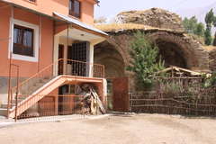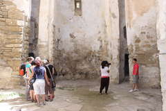 Van Region, Besuch im Dorf Yedikilise (sieben Kirchen), Eingang zu einem Kirchenanhang, der noch als Stall verwendet wird. Die Dorfkinder wollen den Touristen Handarbeiten verkaufen.