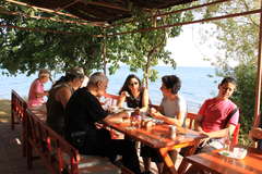 Vansee, Dr. Nikolaus Koch, ein Karlsruher Anbieter von naturnahem Tourismus, lädt die Gruppe ein, seine Ferienanlage am Vansee bei Ercis zu besichtigen. Enver Özkahraman und Ehefrau kommen zum Tee vorbei.