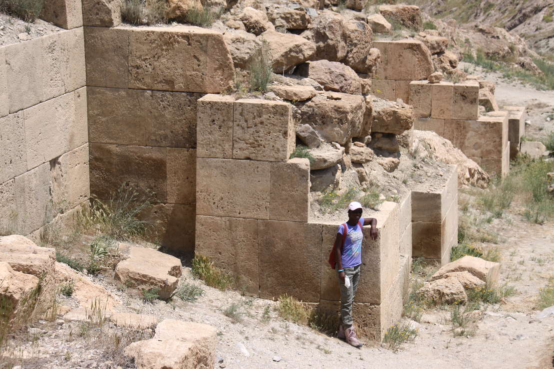 Auf Vorschlag unseres Reiseleiters besucht die Gruppe am ersten Tag zwei der wichtigsten Kulturdenkmäler der Region, die Ausgrabung urarträische Festung Sardurihinli bei Cavustepe und die Klosterinsel Akdamar mit der berühmten Kirche. Alexa vor der Festungsmauer.